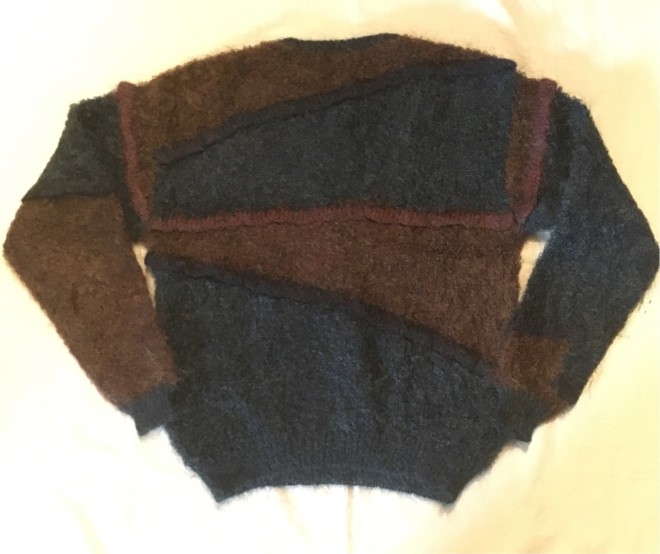 ブランド詳細不明ですが、よく仕上がっているモヘアミックスのクレイジーパターンニット。