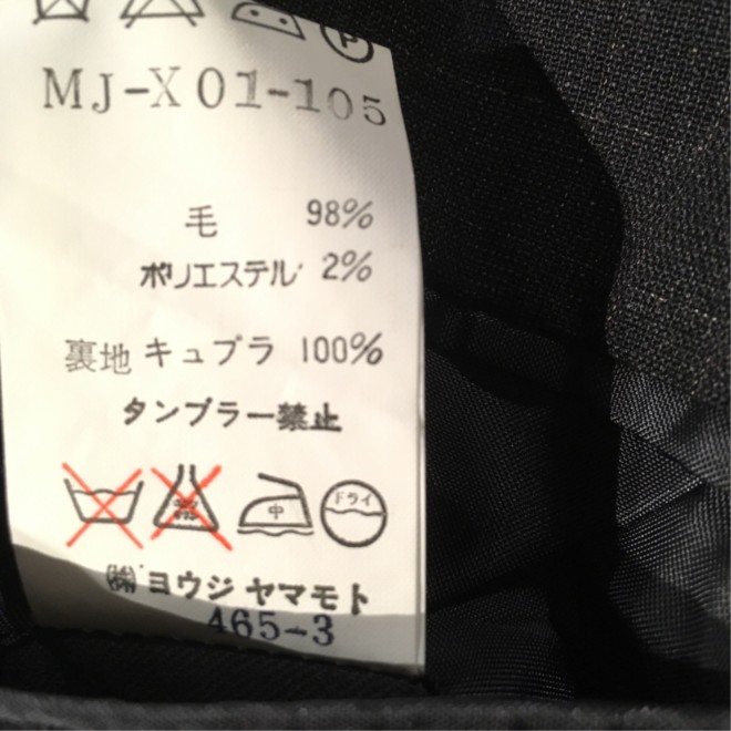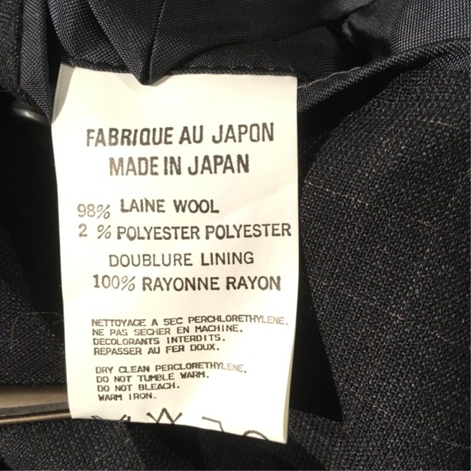 日本製、表地はウール98% × ポリエステル2%の生地感です。裏地はキュプラ100%です。