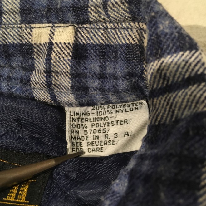 南アフリカ製の、キルティングフランネルシャツです。