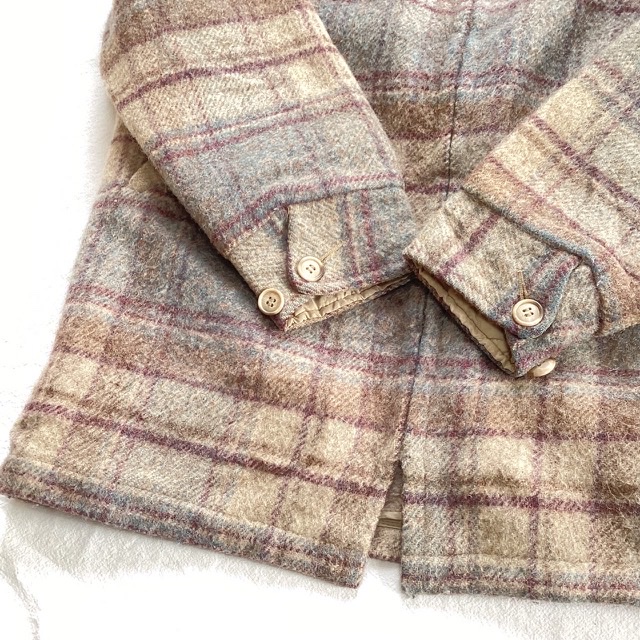ベージュ系の甘めなチェックが印象的な一着。