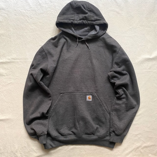 バックに思いっきりパタゴニアリスペクトしたプリントのカーハートフーディー。