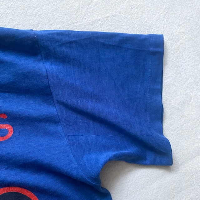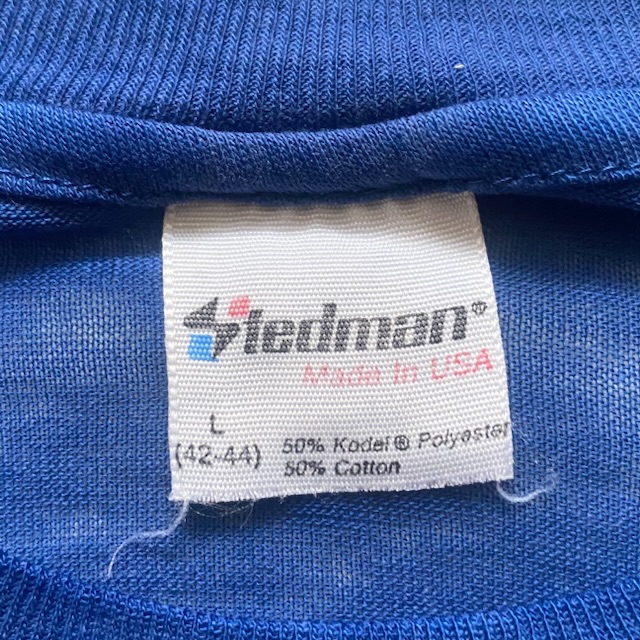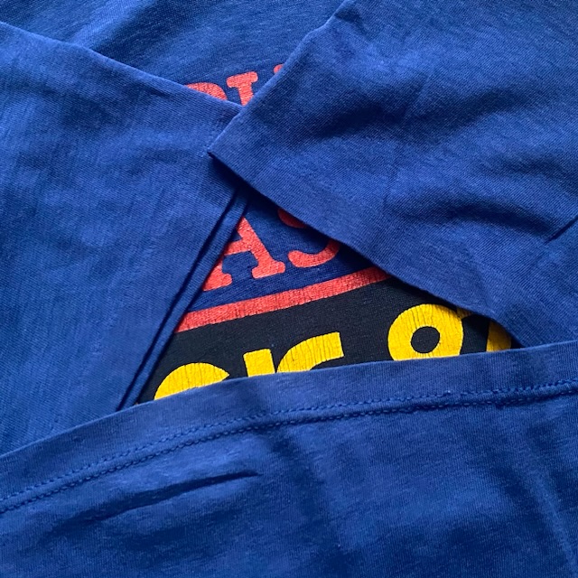 真っ青な良ボディに赤、黄色のラジオ番組プリント。