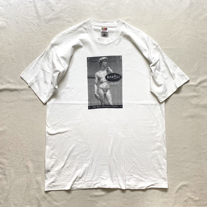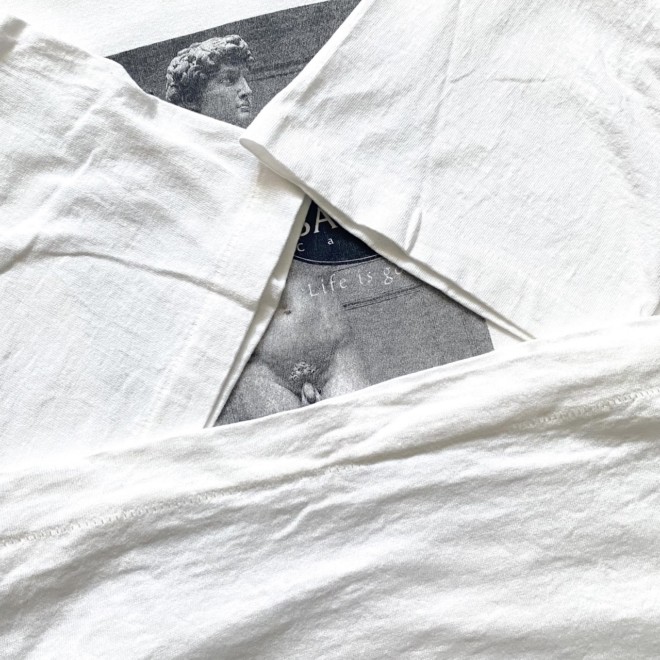 フロントのダビデ像と、控えめなバックのロゴプリント。