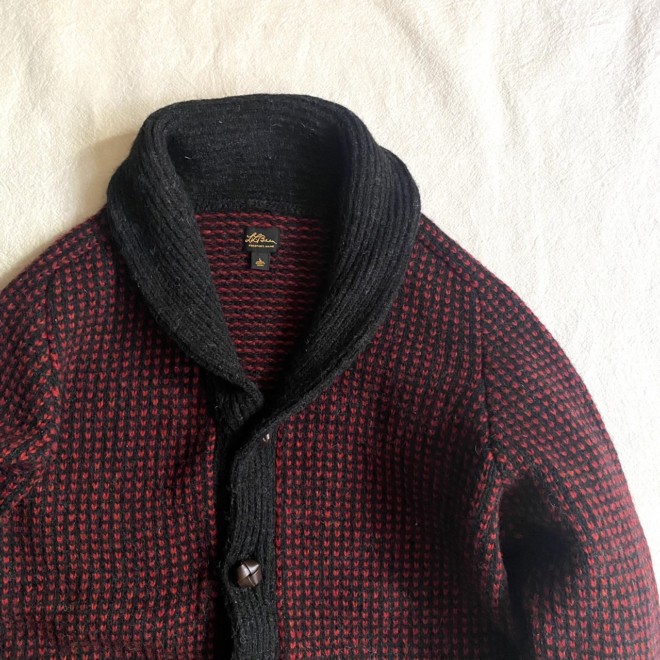 L.L.Beanのショールカラーニット。