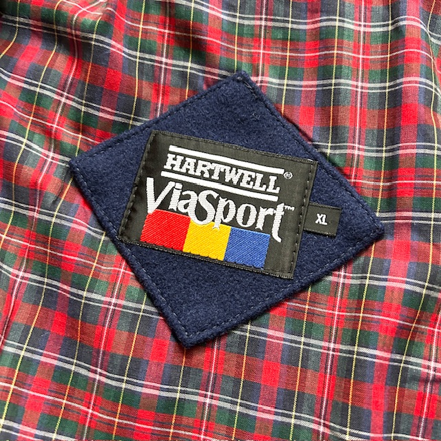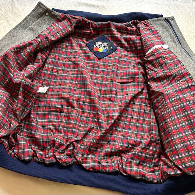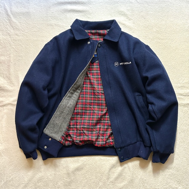 シンプルなネイビーのメルトン生地に裏地の赤タータンチェックがよいアクセントに。