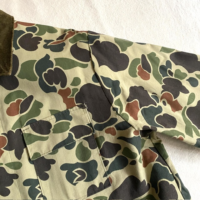 ハンティングジャケットのカントリー感あるカテゴリなのにパキッとしたダックハンター柄で