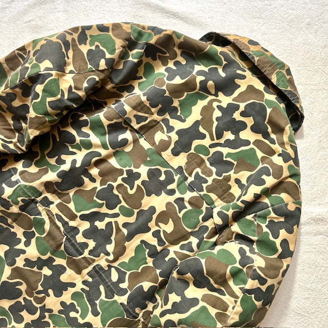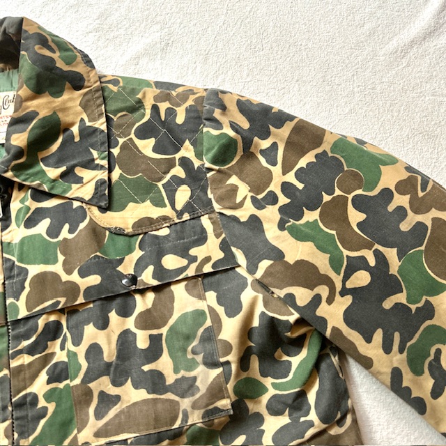 ダックハンター柄と、ちょっと大きめの襟が印象的。