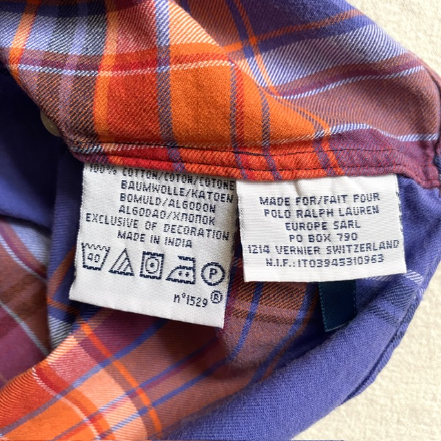 パープルのベースカラーにオレンジラインのチェック。