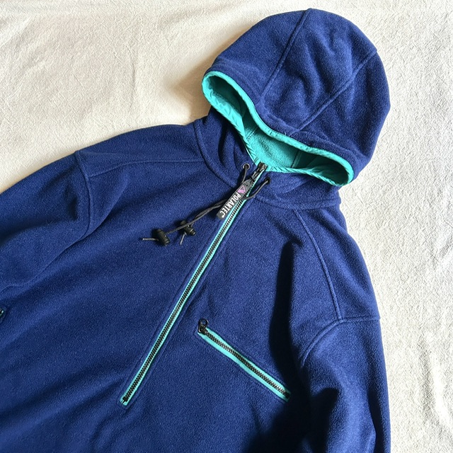 深みのあるブルーを基調に、ジップ部分やフードの縁などで刺さるアクアブルーがマジで良い。