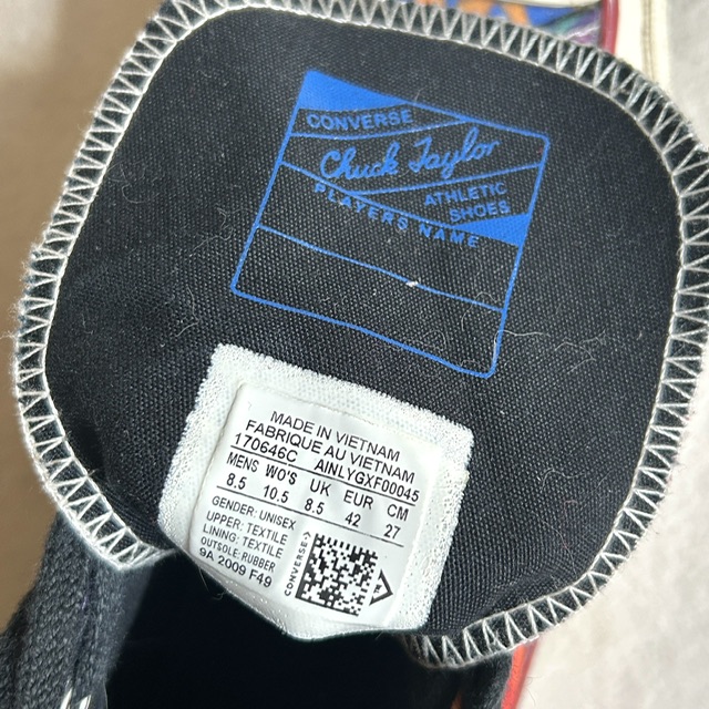 本来コンバースのロゴ下に商品タグのようなギミックが付いているのですが、欠損している為このプライス。
