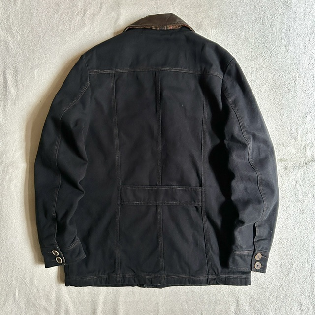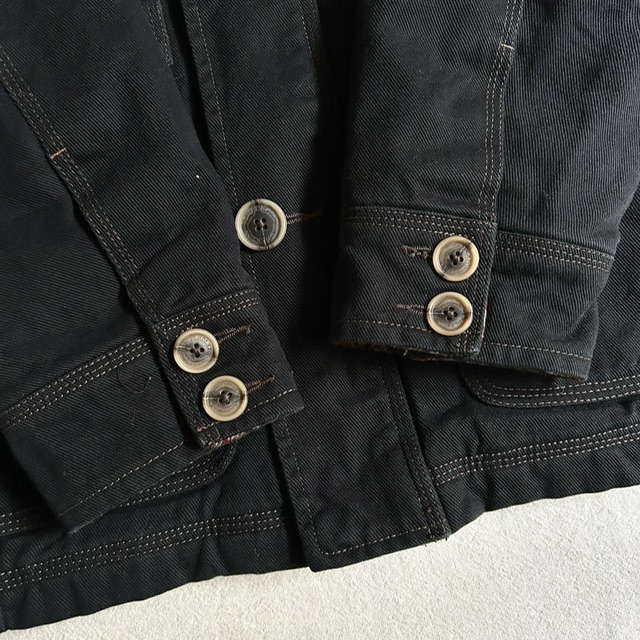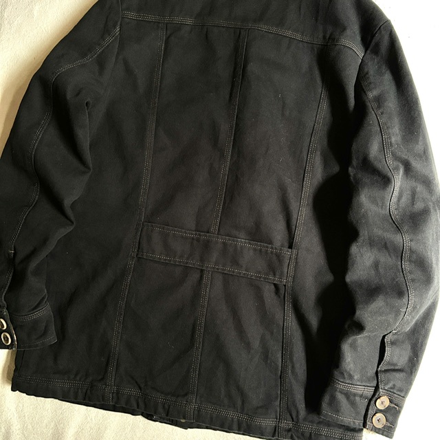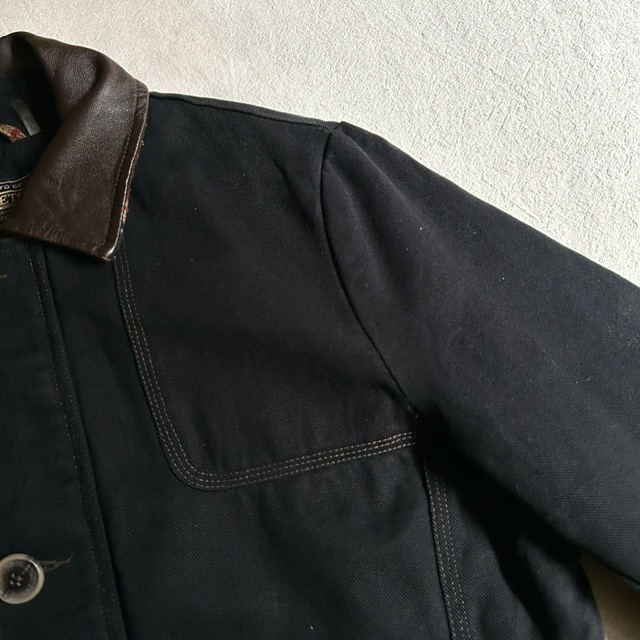 黒のコットンツイルにトリプルステッチのワークな面構え。