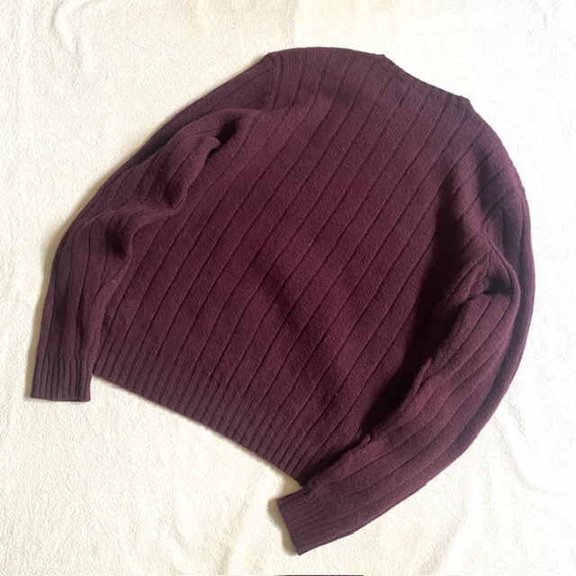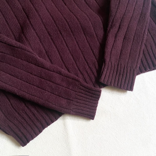 リブ編みボルドーカラー。