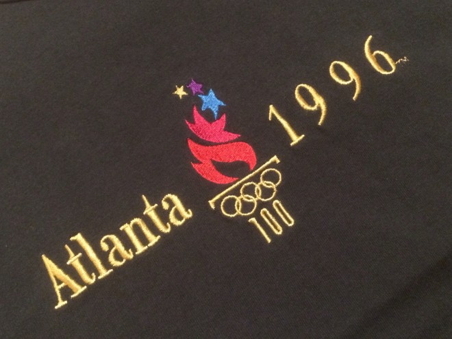本日は刺繍縛りでいきます、アトランタオリンピックの時のTシャツ、ボディはチャンピオンを使用しています。