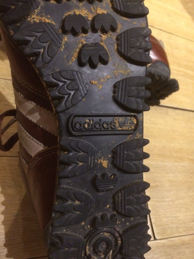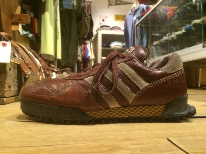 トレフォイルのソールが特徴的なマラソントレーナー、レザーアッパーが渋いです。