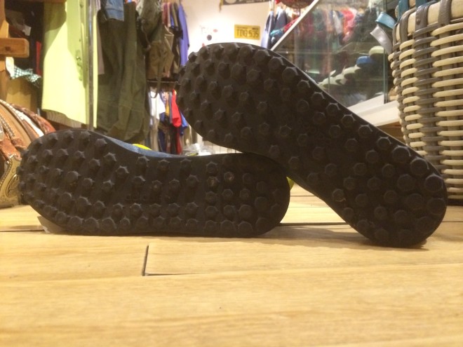 スキッドグリップみたいな形のやつ、畝の入った生地をアッパーに採用してますが、起毛感がないのでスッキリしてます。