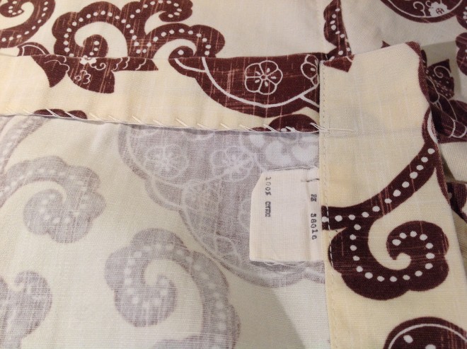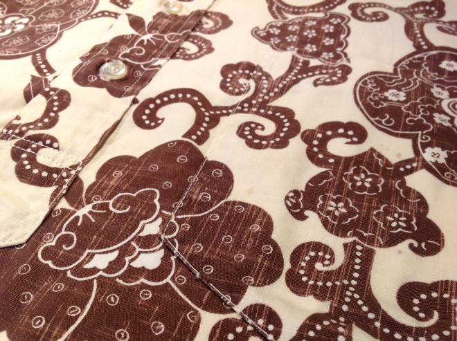 ロングポイントの襟、和柄テイストの生地、しかも表地使い。