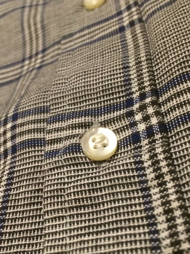 ザラッとした肌触りのボタンダウンシャツ、個人的にはすごく好きな配色のチェックです。