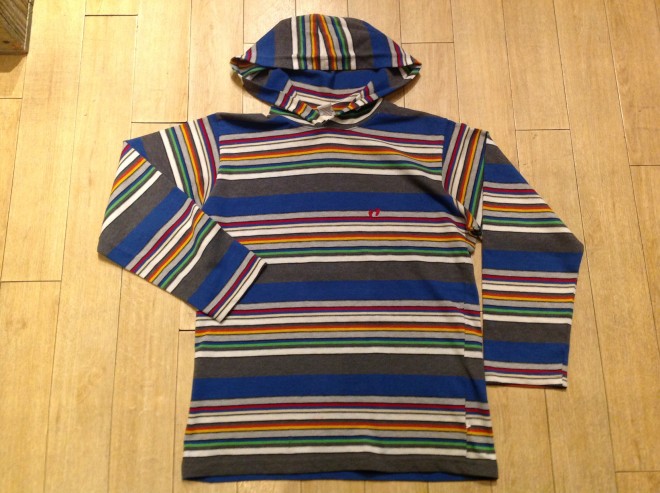 お得意のジャガード ボーダー生地のロンTパーカーです。