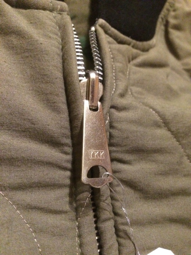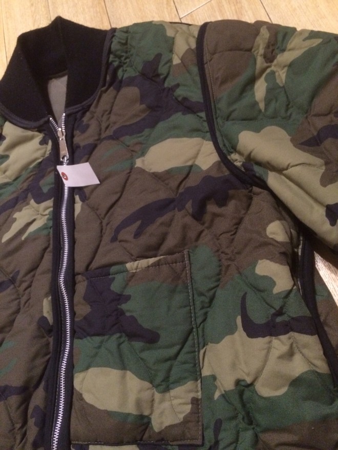元々リバーシブルで着れるように作られてるのかは不明ですが、ジッパーがリバーシブル仕様になっているのでカモ柄の方でも着れそうです。