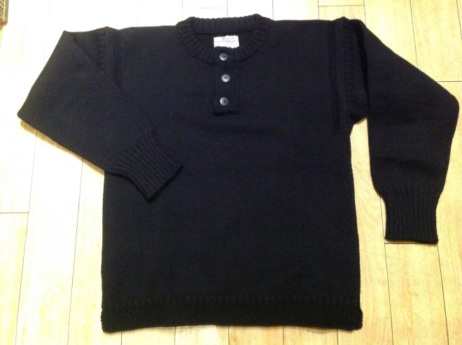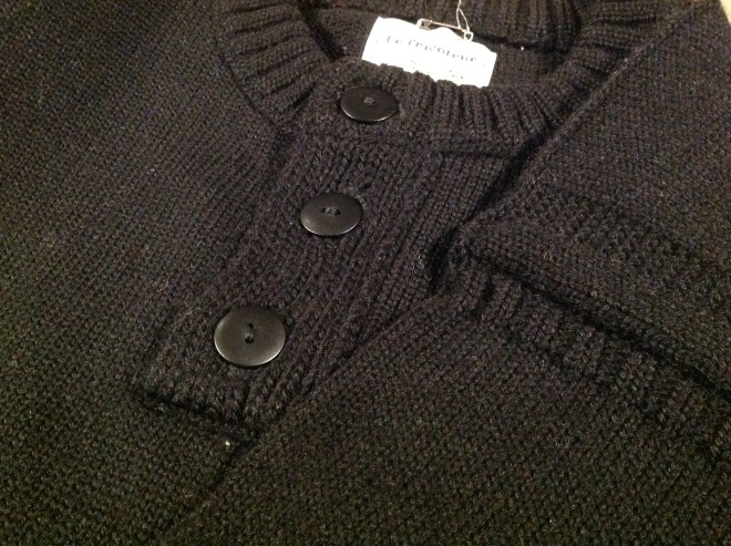 黒。3つボタンのヘンリーネック。