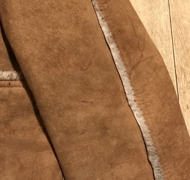 左袖にペン汚れ、首元のボアも少々黒ずんでいますが気を遣わずガシガシ使えるんじゃないでしょうか。
