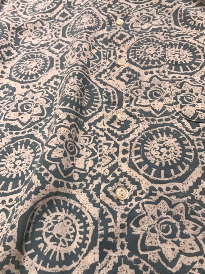 遅くなってしまったので早速、半袖の柄シャツを。