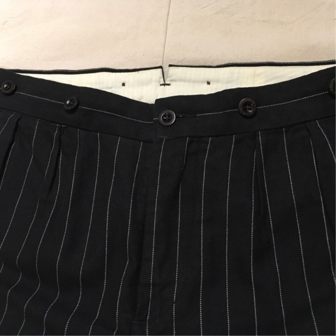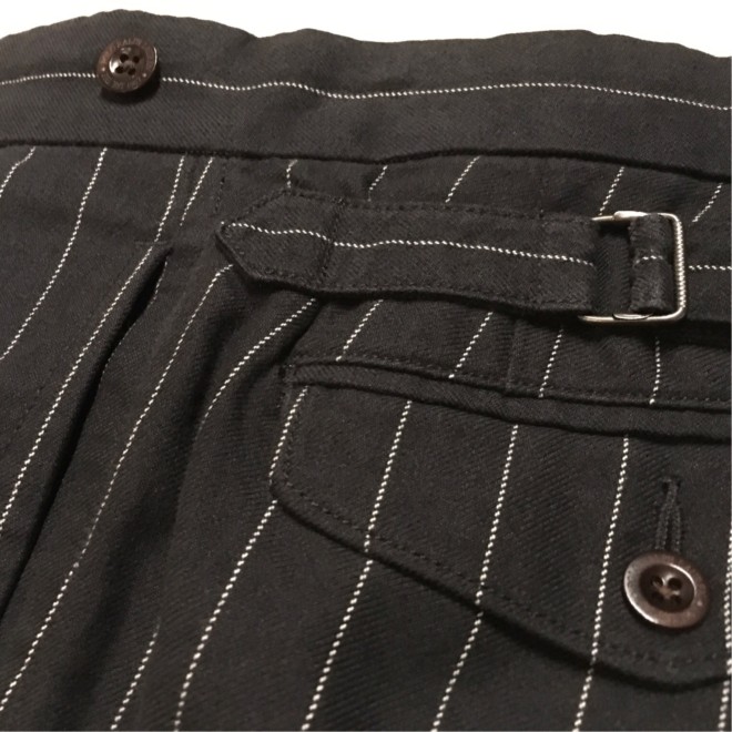 ベルトループ無し、サスペンダーもしくはアジャスターで調節するタイプ。