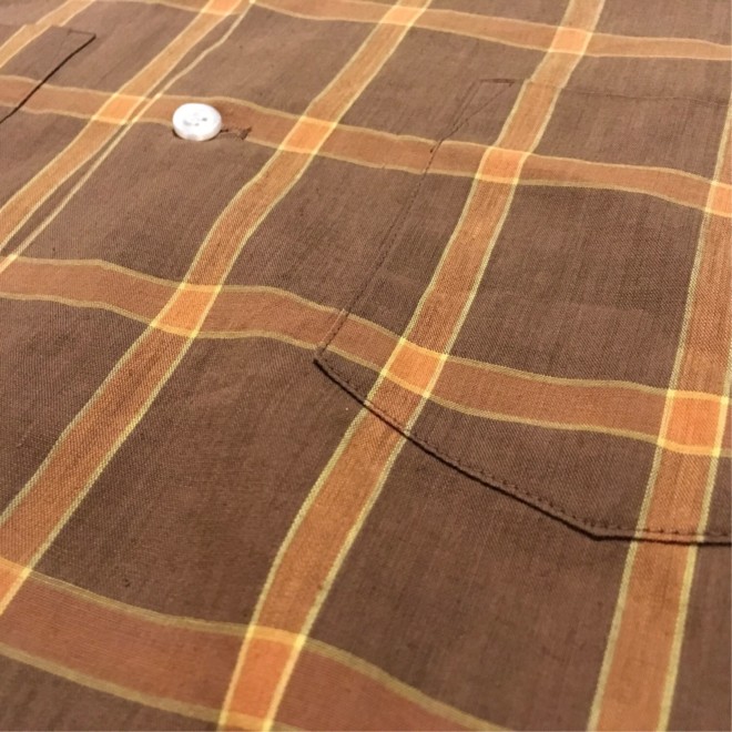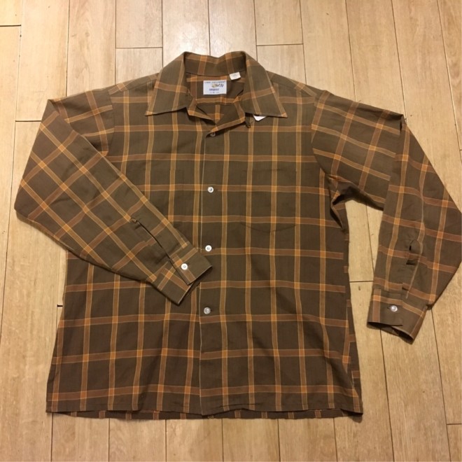 秋色チェックの開襟シャツ。