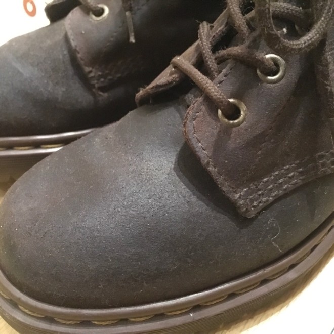 スエードではありませんが、銀面が擦れて毛羽立って非常に良い表情になってます。