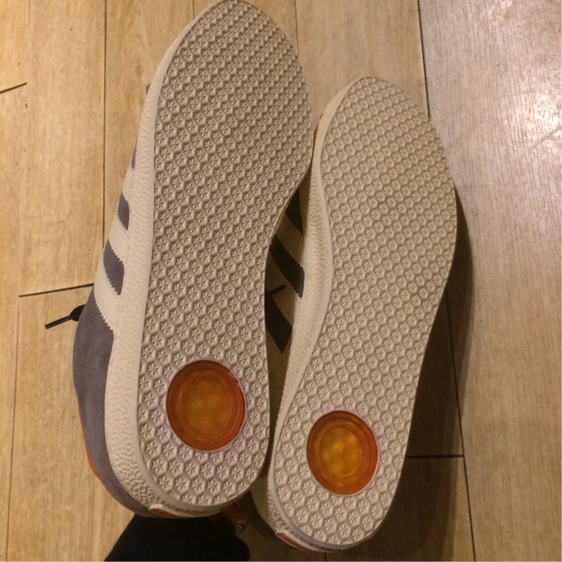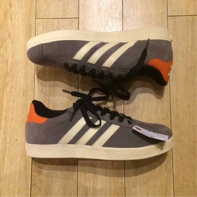 グレーのアッパーにホワイトのスリーストライプス。