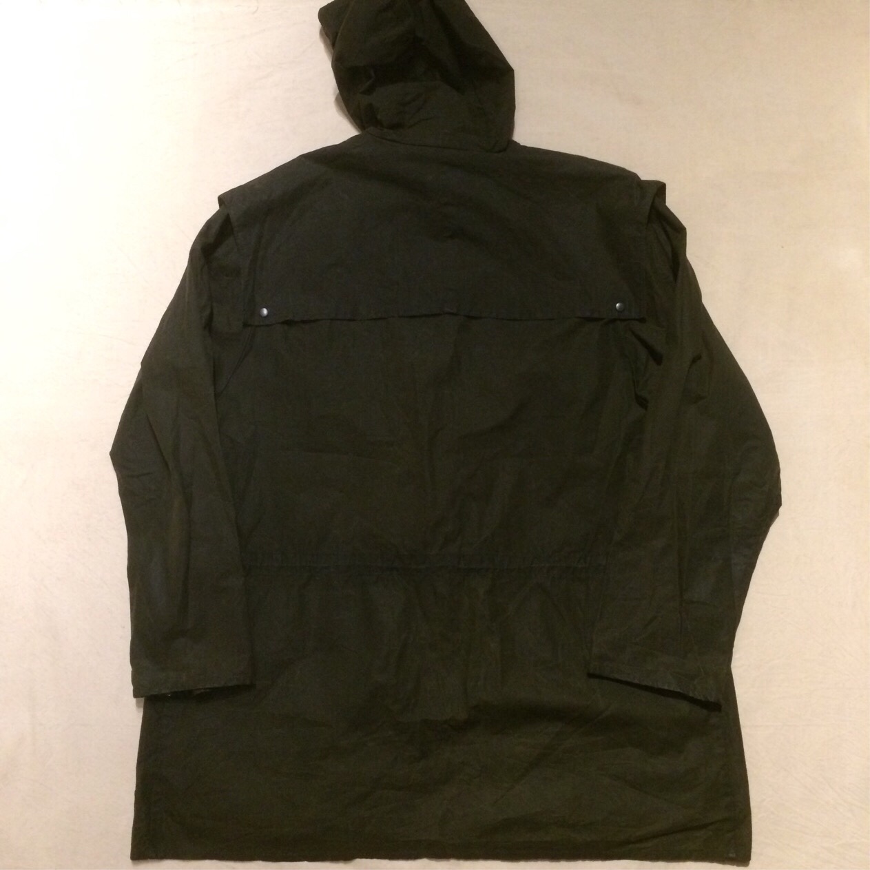首元、腰元にはドローコードが付いていて、 収納式のフードも付いています。