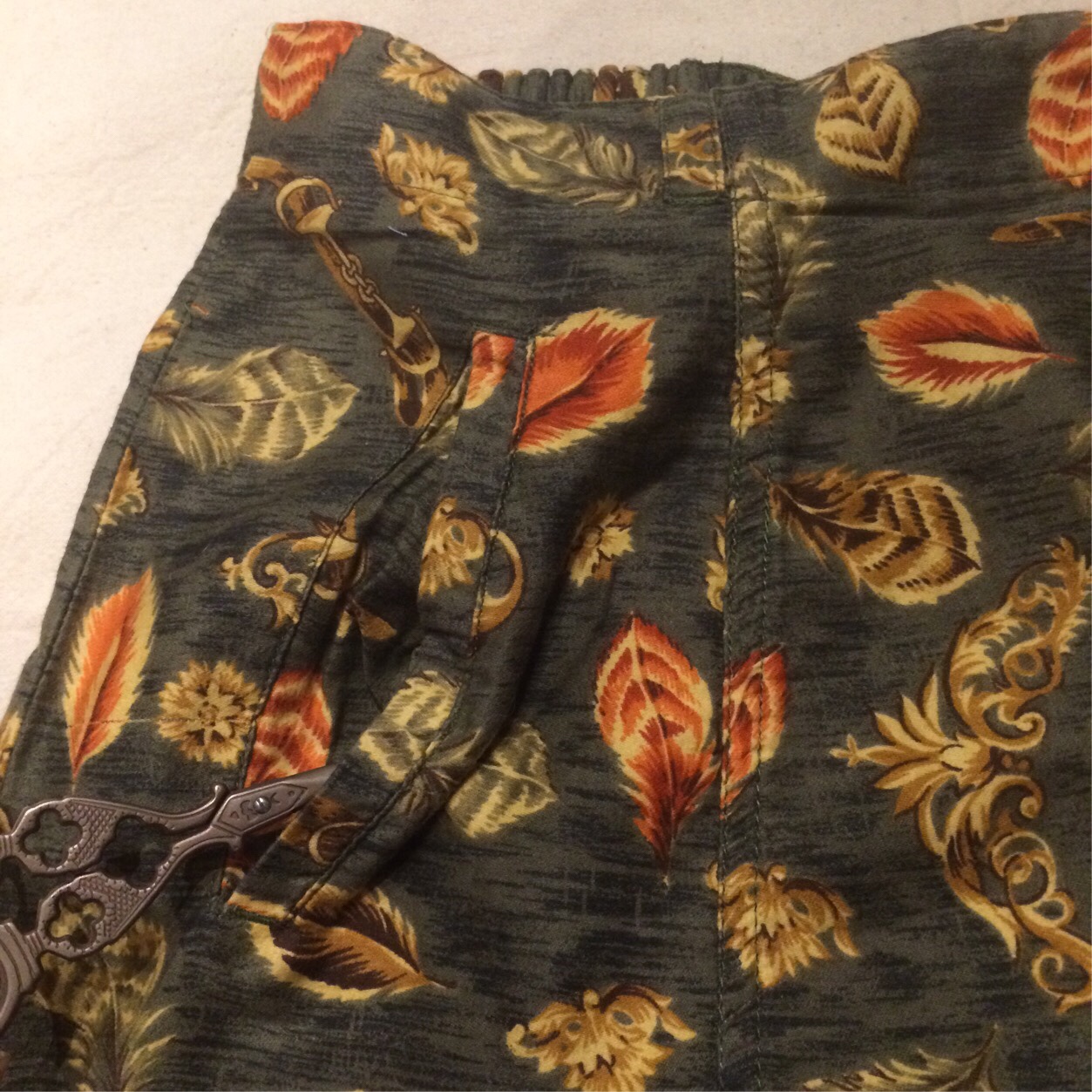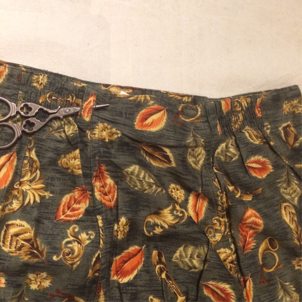 オリーブベースで、あたたかい印象を受ける植物柄になっています。