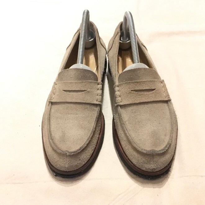 ベージュスエードのローファーです。