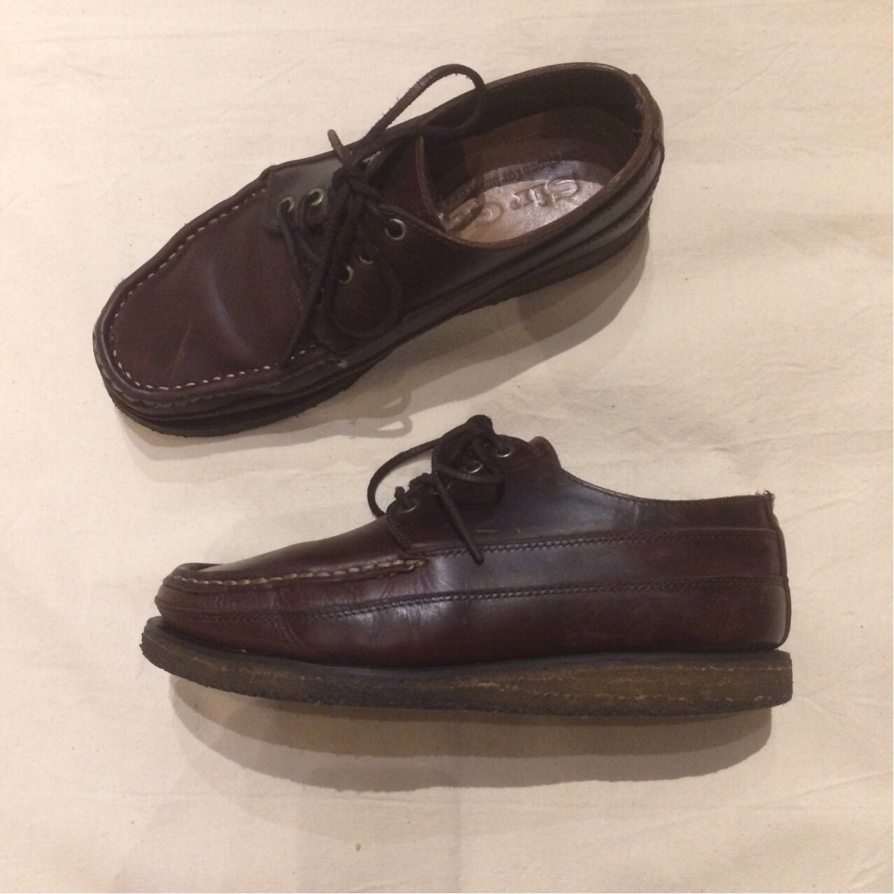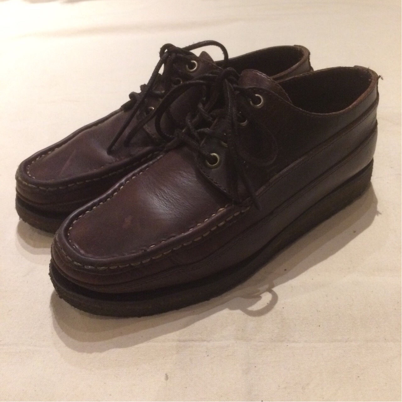 シンプルなクレープソールの、 重厚感のあるデッキシューズ。