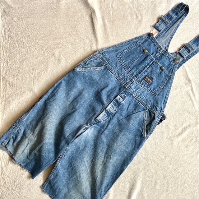 オシュコシュのオーバーオールを贅沢にカットオフされたハーフパンツタイプ。