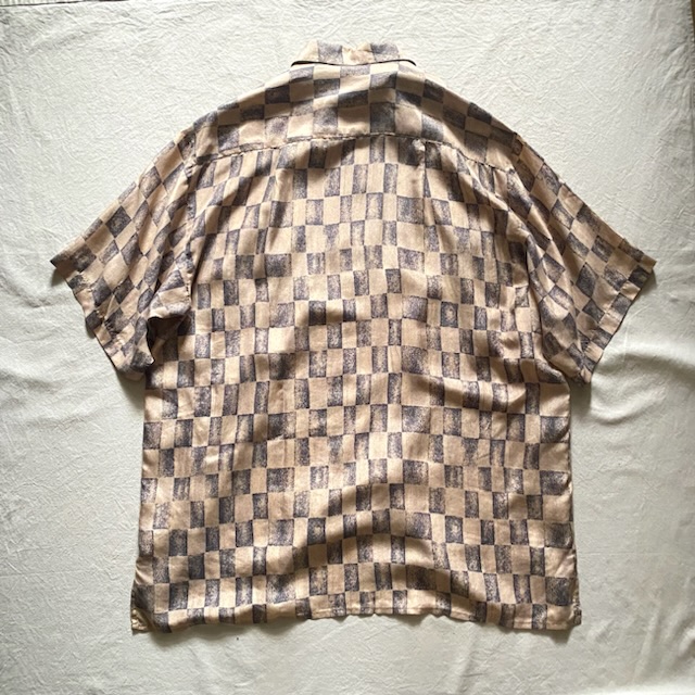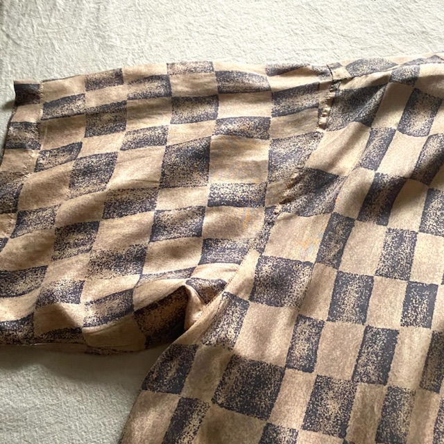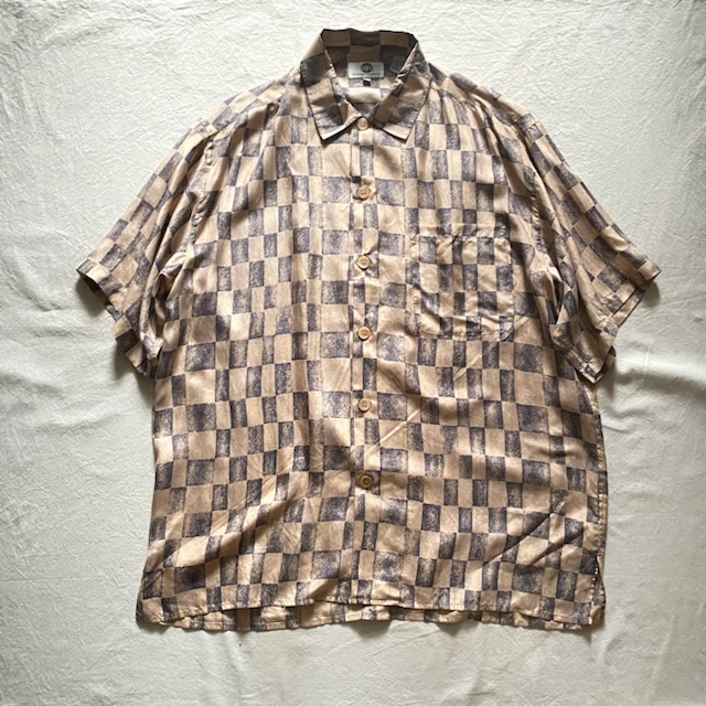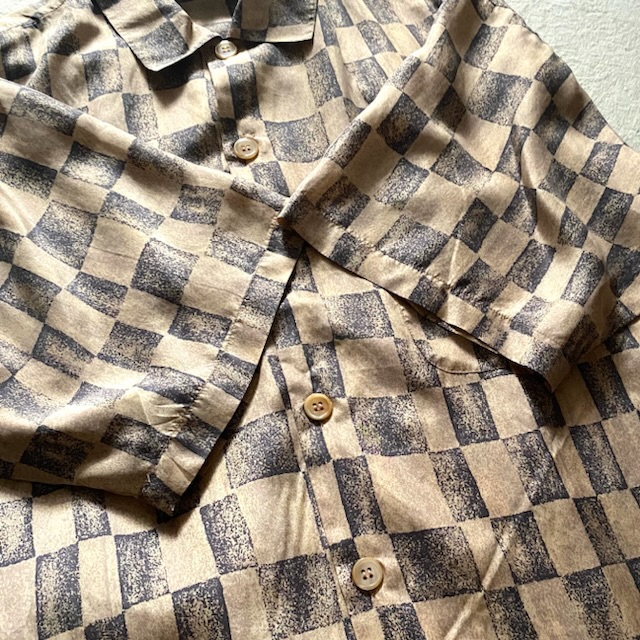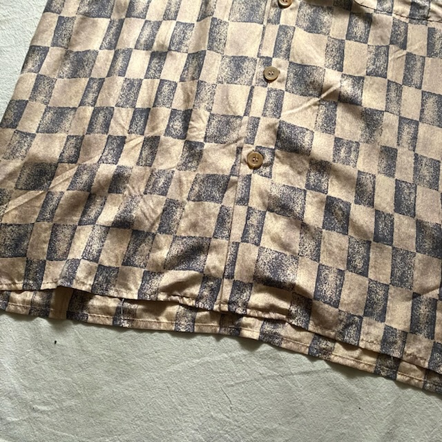 柄もチェッカーフラッグが不規則に並んでシャツの波打つ質感にマッチしてます。