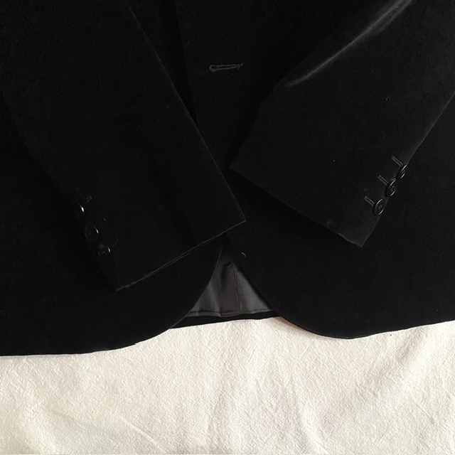 肌触りよいベルベット素材の三つボタン。