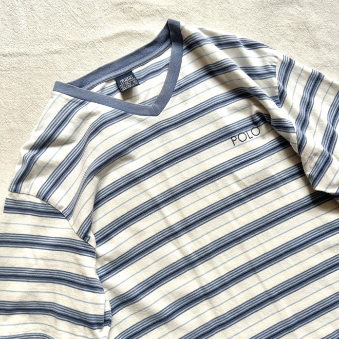 涼し気な配色のマルチボーダーに浅めのVネック。