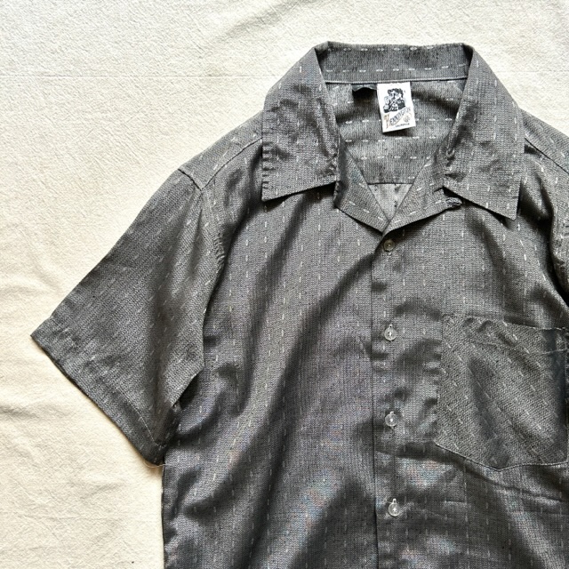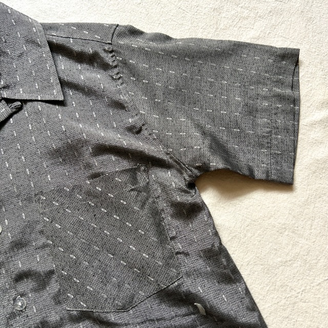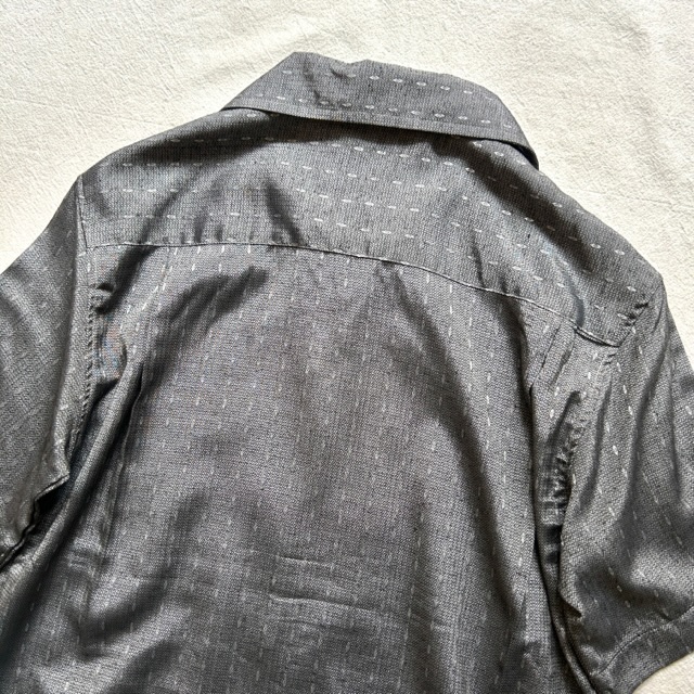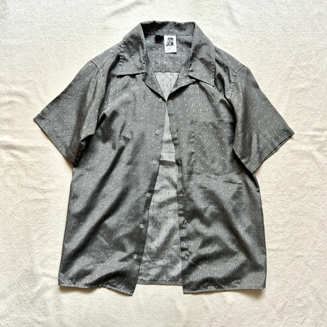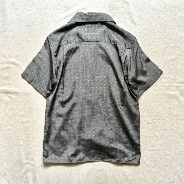 光沢感のあるグレーを基調としたオープンカラーシャツ。
