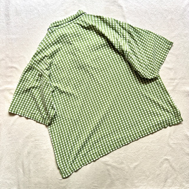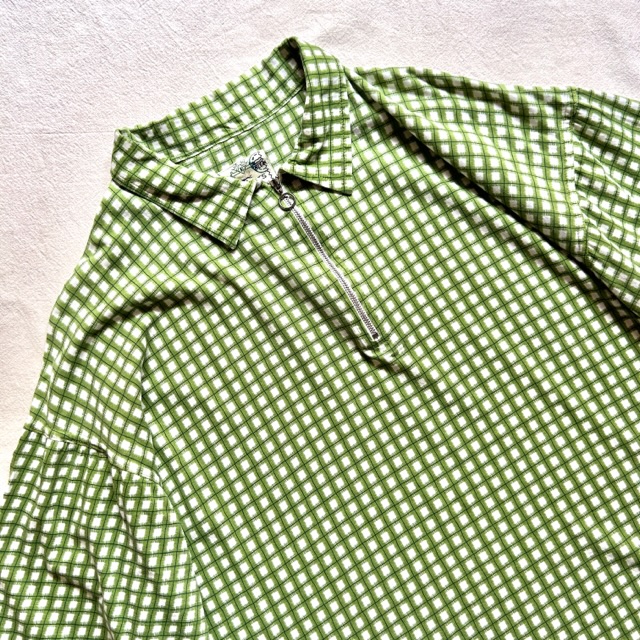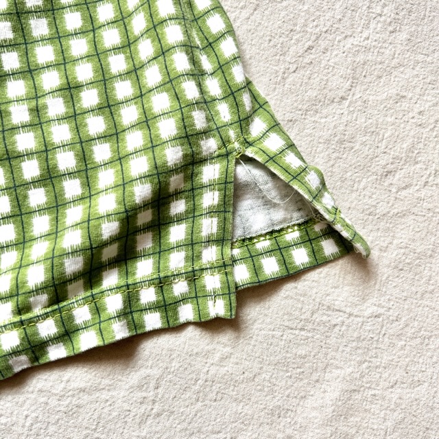 グリーンベースの色味に独特なチェックデザイン。