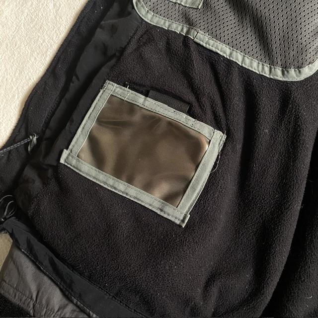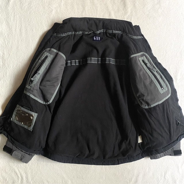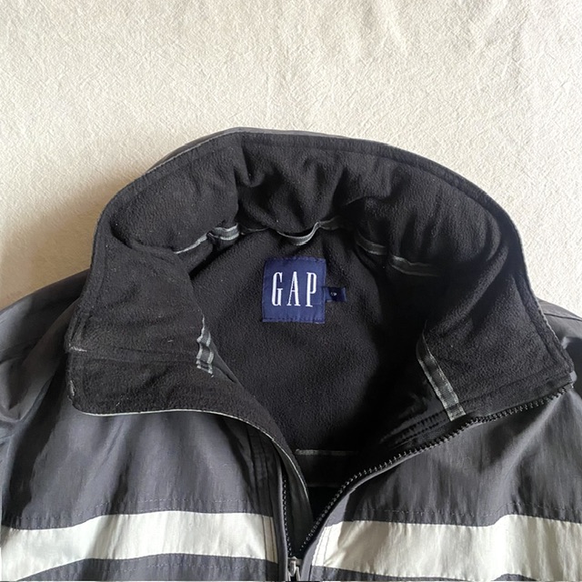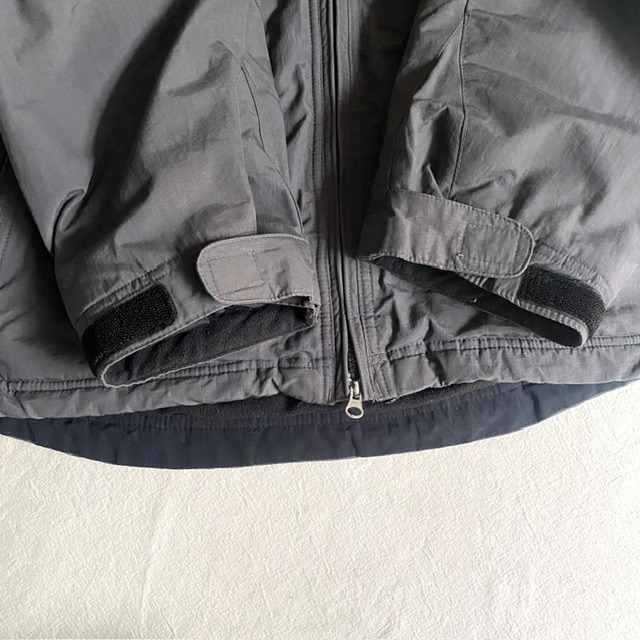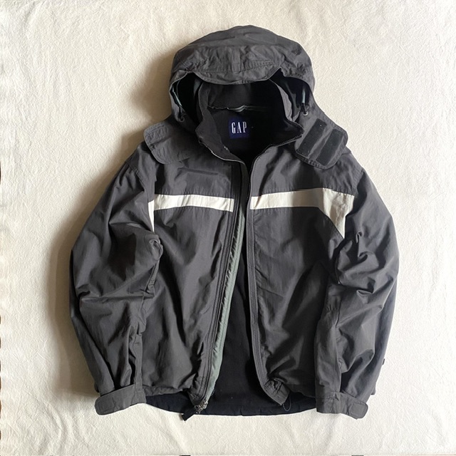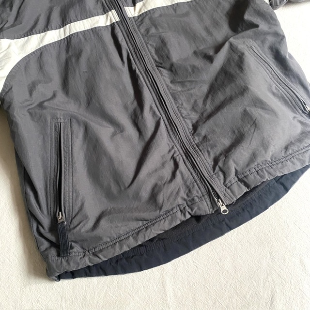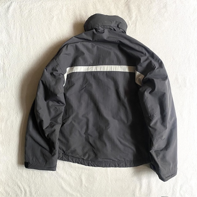 チャコールグレーにアーチ状の切り替え入ったクールなナイロンジャケット。
