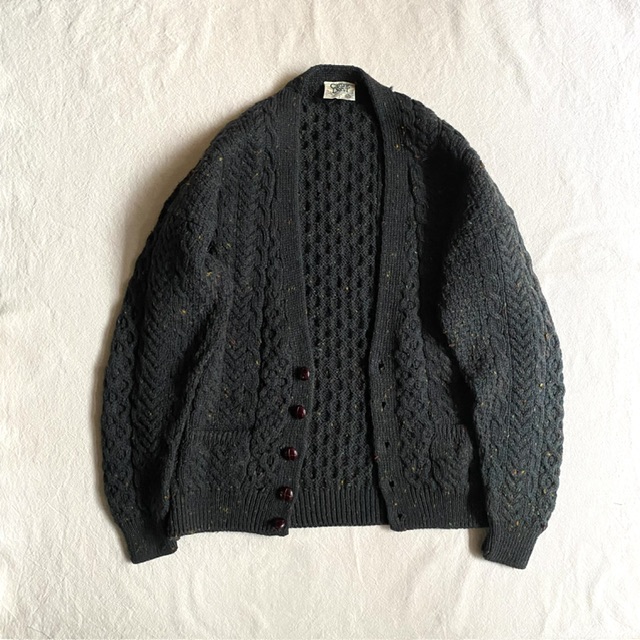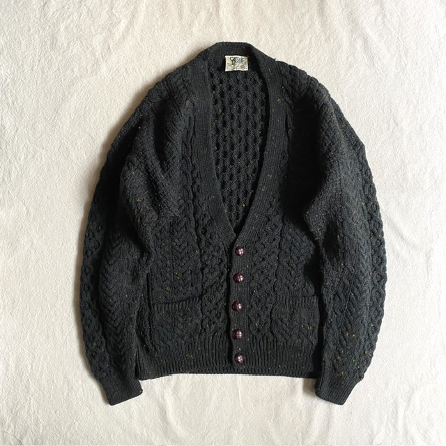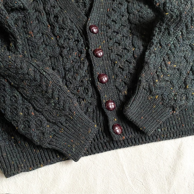 ローゲージのケーブル編みが特徴的なフィッシャーマンズニットカーディガン。