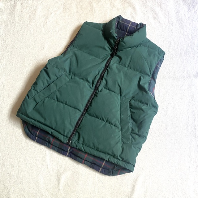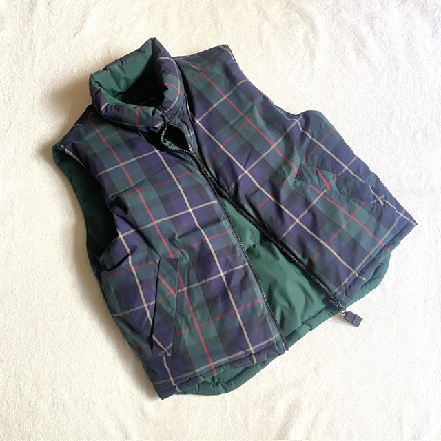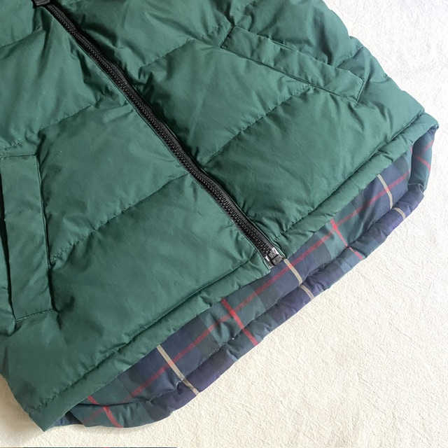 深緑のナイロンシェルに、裏っ返したらナイスなチェックのリバーシブル。