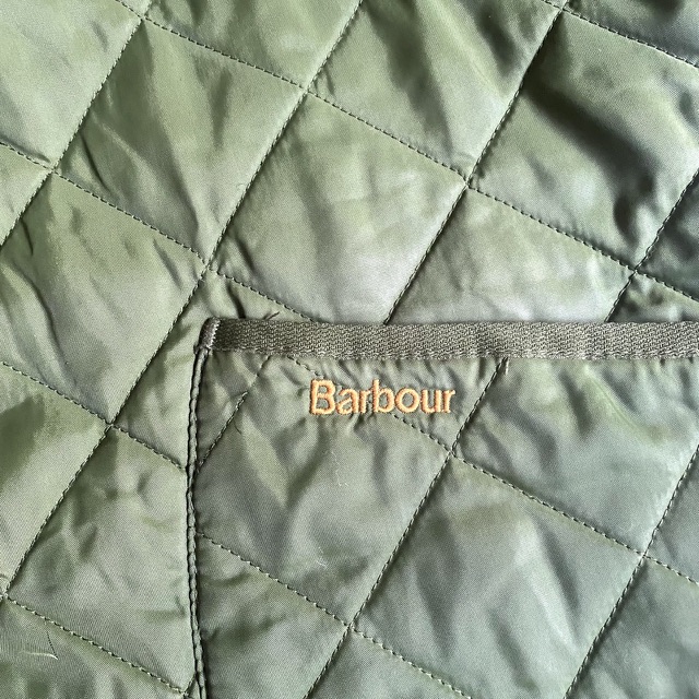 斜めに傾けて配置されたポケットに小さなブランドロゴの刺繍。
