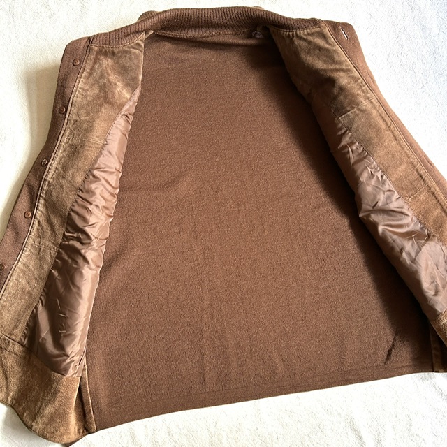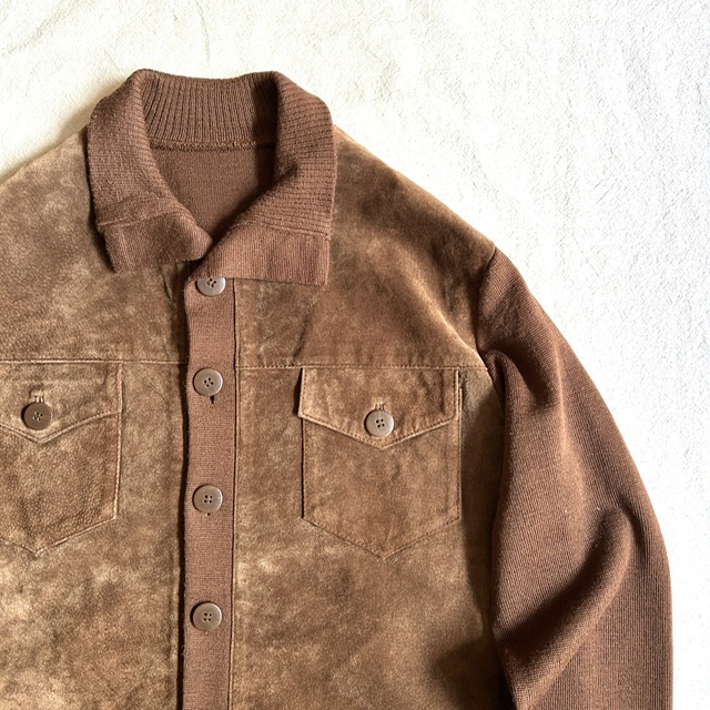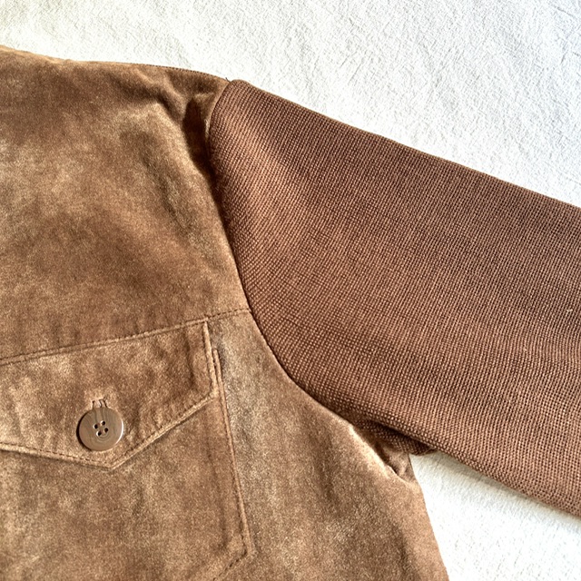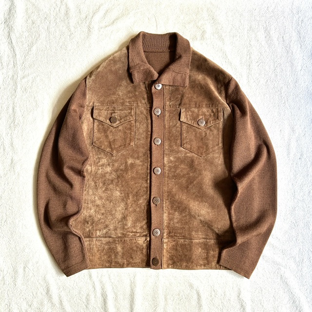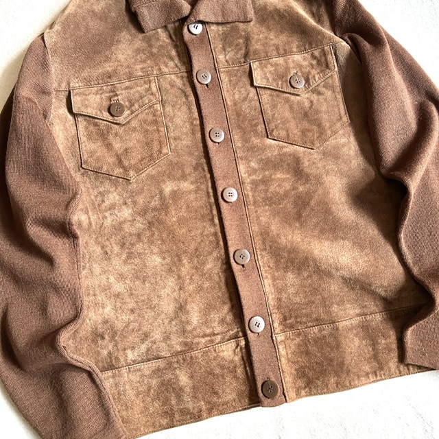 スエードレザーとニット生地の切り替えジャケット。