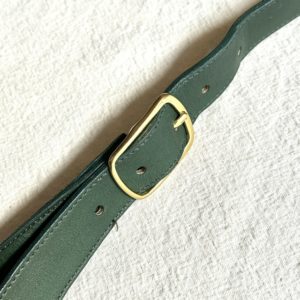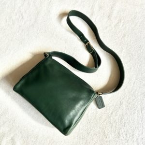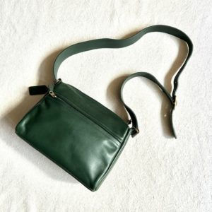 グリーンレザーのショルダーバッグ。