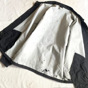 右肩にタタキのリペアと、生地裏の加工剥がれがありますが