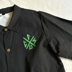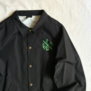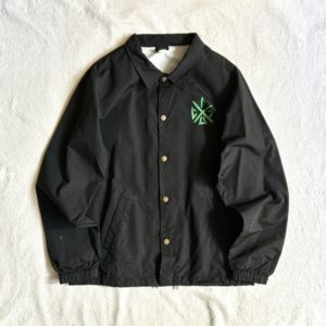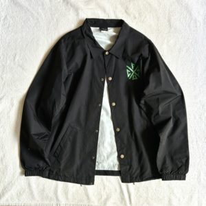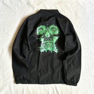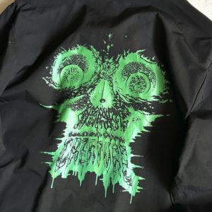 バックにでっかくクリーチャープリントのコーチジャケット。