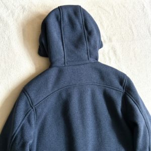 ナイロンのライニングでスッと袖通り、Sサイズのタイトな今っぽいサイズ感にフードで首元までボリュームあるナイスシルエット。