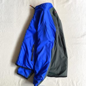 前身頃ブルーに後ろ身頃がグレーのスタイリッシュなツートーンカラー。